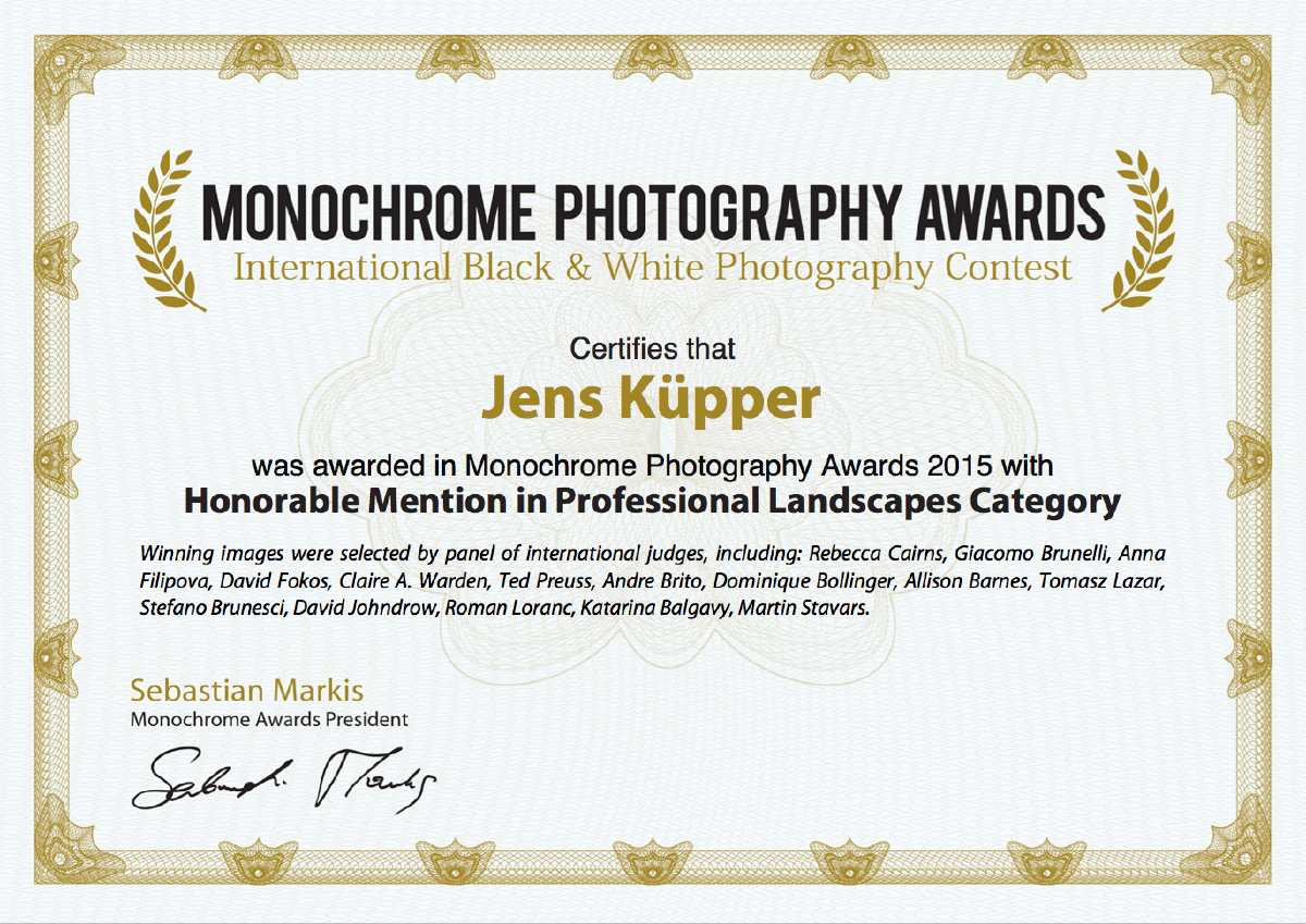Freitag hatte ich erfreuliche Post. Die Fotografie “Abandoned House, Kansas, 2013” wurde bei den Monochrome Photography Awards 2015 mit einer “Honorable Mention”, einer ehrenvollen Erwähnung, ausgezeichnet. Laut der Wettbewerbsausrichter wurden mehr als 7.200 Beiträge aus 79 Ländern eingereicht und bewertet.