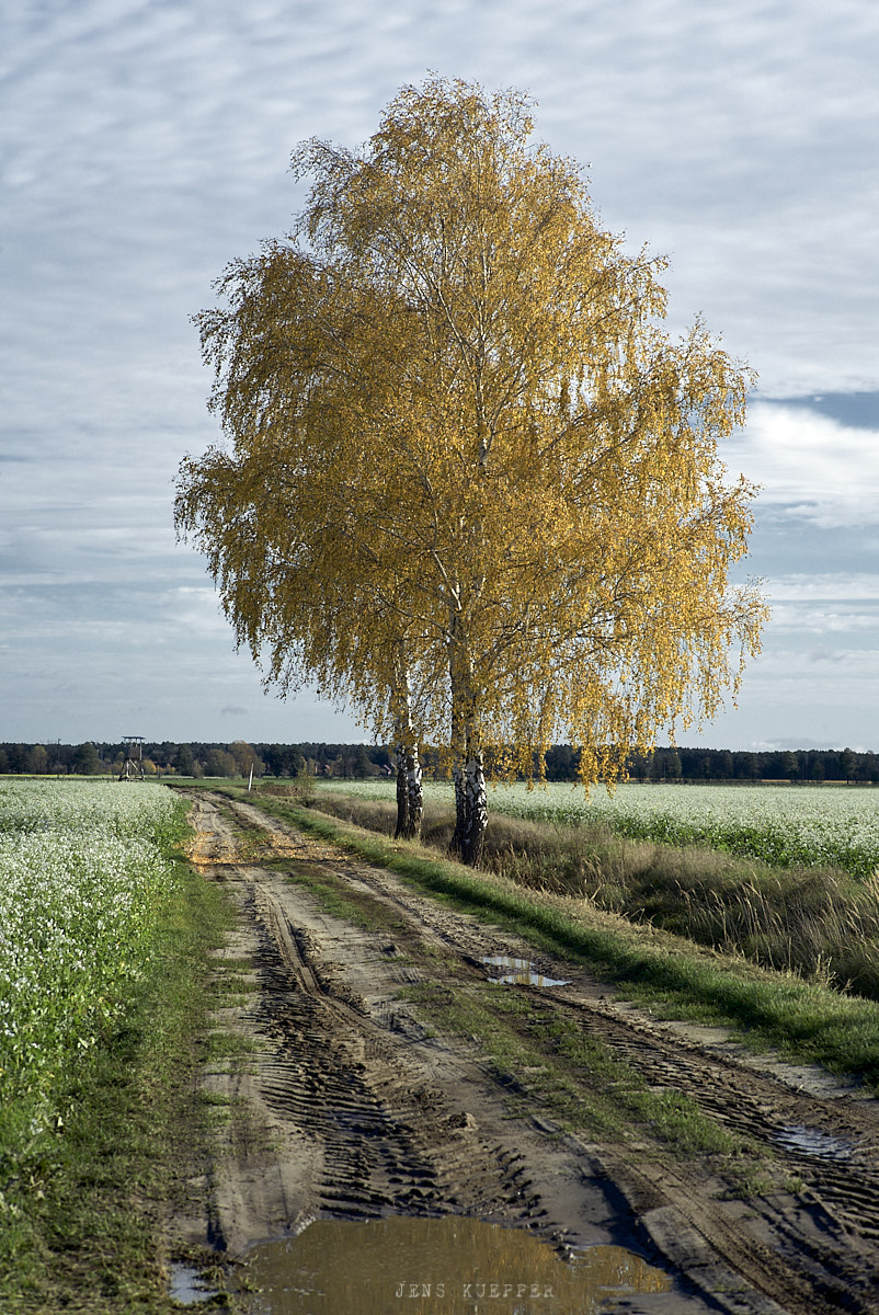 Scharf kann das Planar natürlich auch, wenn man will. Der Herbst hier in schönen Farben und soweit meine Recherche stimmt sind die Felder mit Ölrettich als Gründünger bestellt.