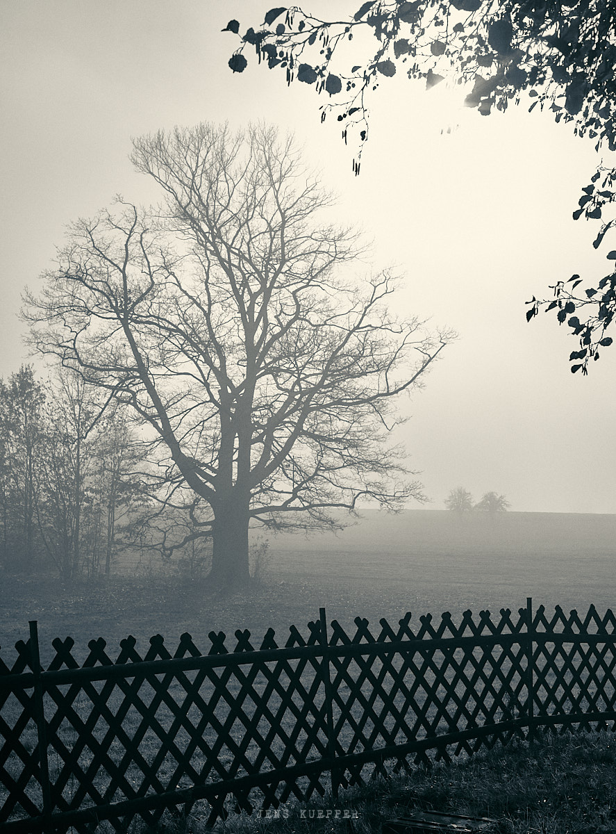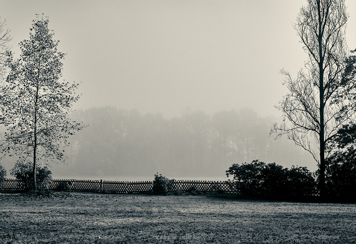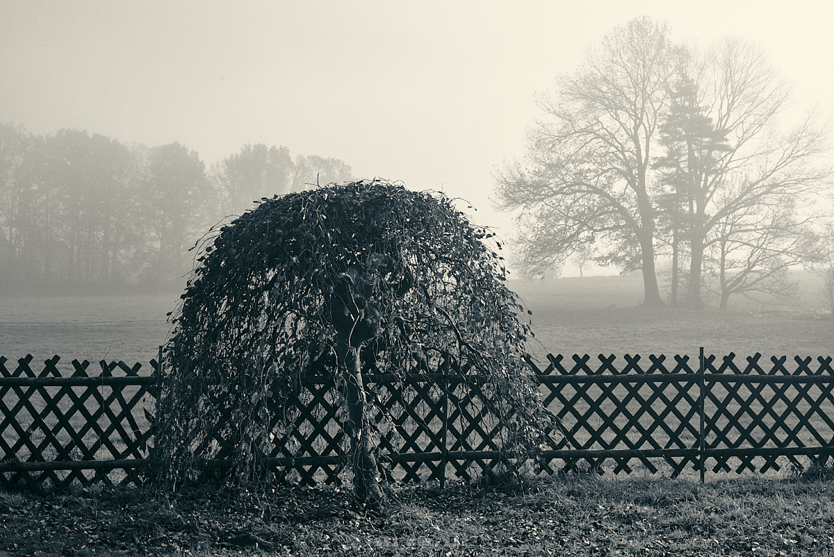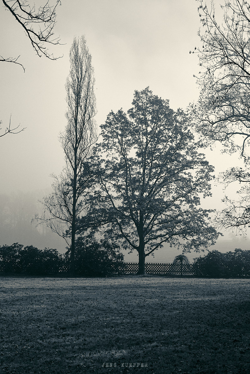 Für Kurztrips – á la verlängertes Wochenende – wünscht man sich überlicherweise schönes Wetter. Das hatten wir auch: Sonnenschein und 10 Grad am Tage. Für Fotos hingegen sind neblige Witterungslagen schöner oder zumindest spannender. Rammenau in Sachsen lag mit seinem Schloss und kleinem Park während unseres Besuchs an der Grenze von beidem. Leicht nebelig war‘s also und so gesehen in Schwarzweiß wirklich schön grau.