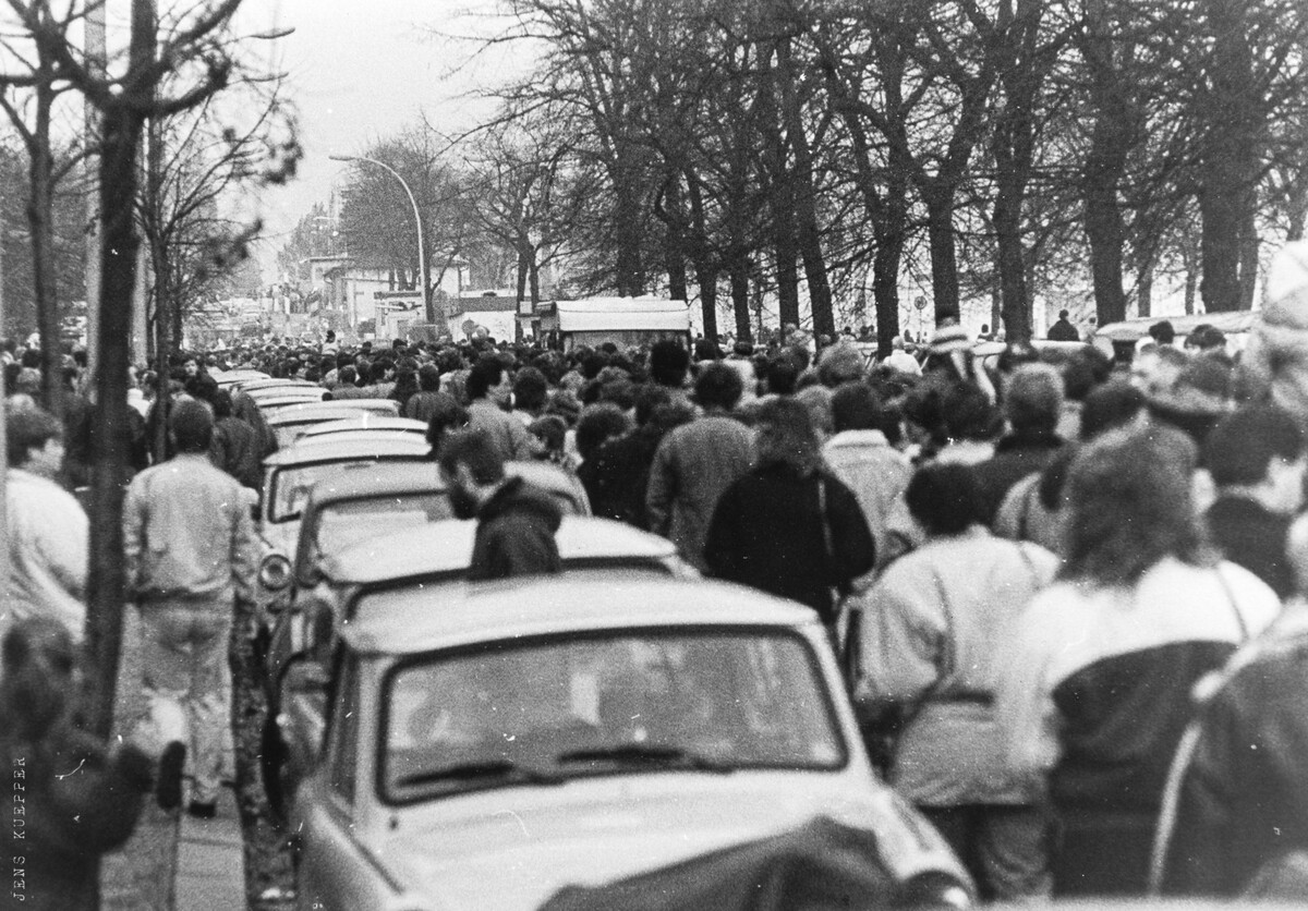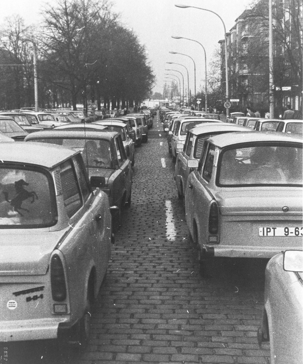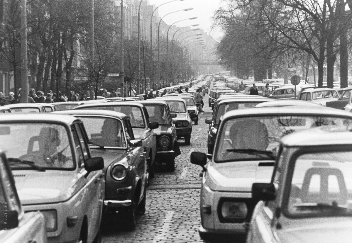 Am frühen Morgen zurück von der Arbeit zog ich mit der Kamera zur nahegelegenen Bornholmer Brücke und dokumentierte den Andrang. Nie zuvor und nie wieder danach habe ich die Bornholmer Straße derart voller Menschen und Fahrzeuge gesehen.